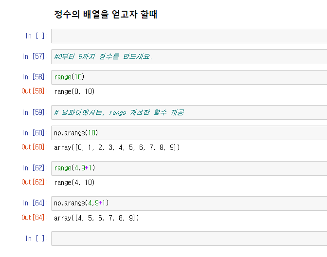 개선된 함수 np.arange()를 사용한다.