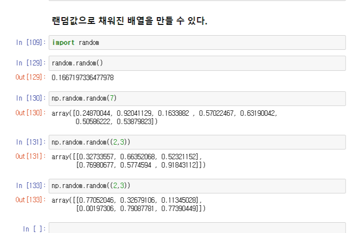 random.random() 에 () 숫자를 넣으면 갯수를 선택할 수 있으며