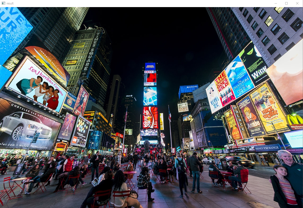#cv2.imshow('Image to 0',image_dst) #타임스퀘어 구멍낸거 출력
