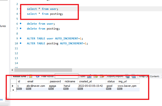 -- id값 초기화 코딩(id값이 1부터 다시 시작)