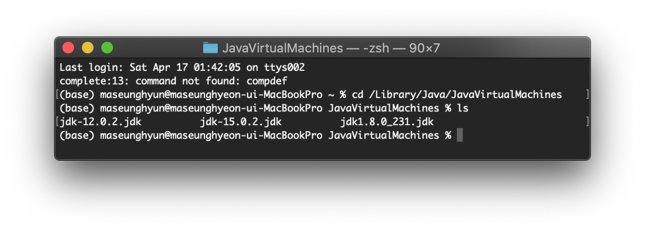ls를 입력하면 'JavaVirtualMachines'안에 있는 폴더들을 볼 수 있다.