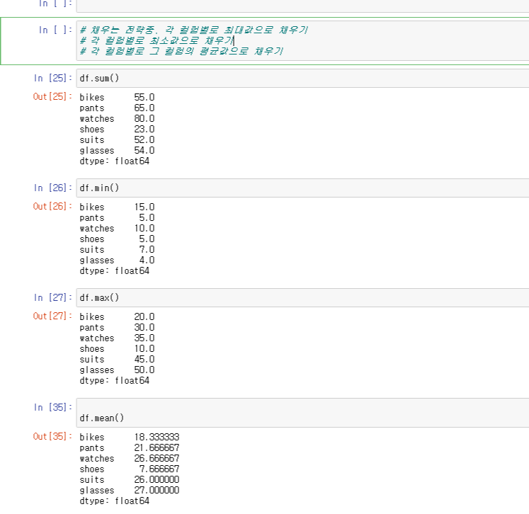 .sum() 각 컬럼의 최댓값을 알수있다.