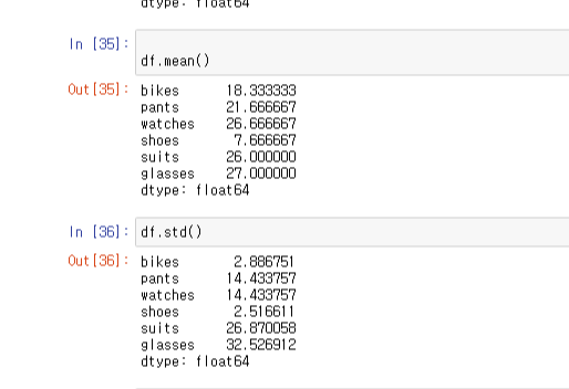 .std() 각 컬럼의 표준편차 값을 알수있다.